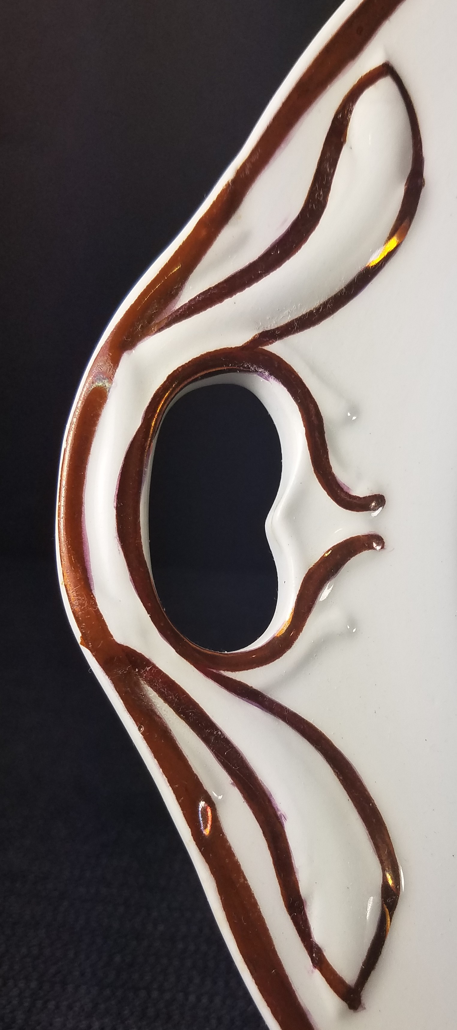 Almost a Wdgwood trademark, the Daisy & Tulip rosette is prominent on the steeple finial and the arch of the handles. In this round body style, Wedgwood flanked the rosette with stylized tulips.