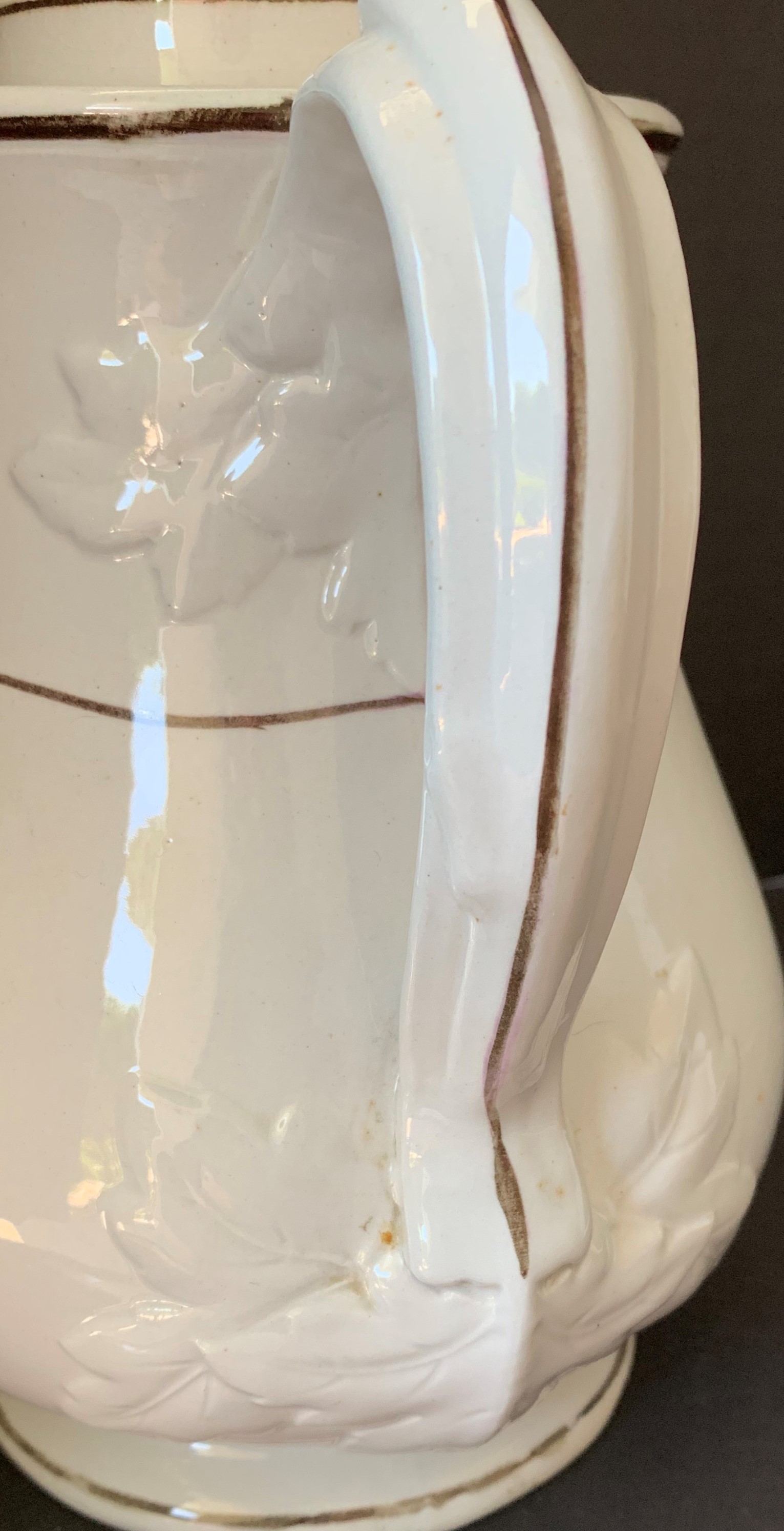 Although the Baker pottery was not a prolific producer of Tea Leaf wares, they did decorate their handsome Draped Leaf style with a classic copper lustre Morning Glory motif.