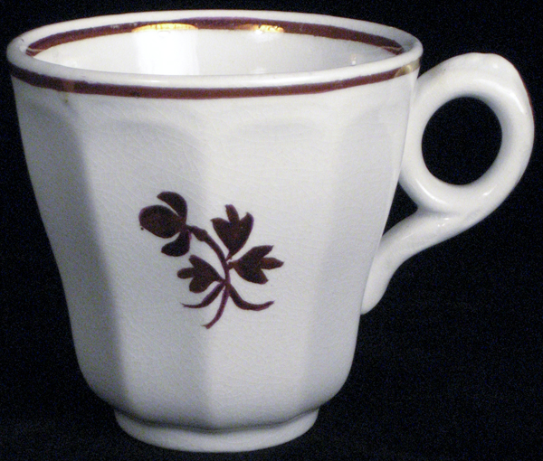 This rare cup was used to serve posset, a hot drink made of eggs, liquor, cinnamon and spices. These tend to measure 3 inches tall and 3 inches in diameter.