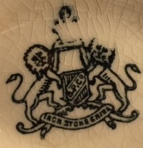 In 1876 American Crockery company was producting white granite wares. The mark used was the English Lion & Unicorn with the initials of the company underneath it.